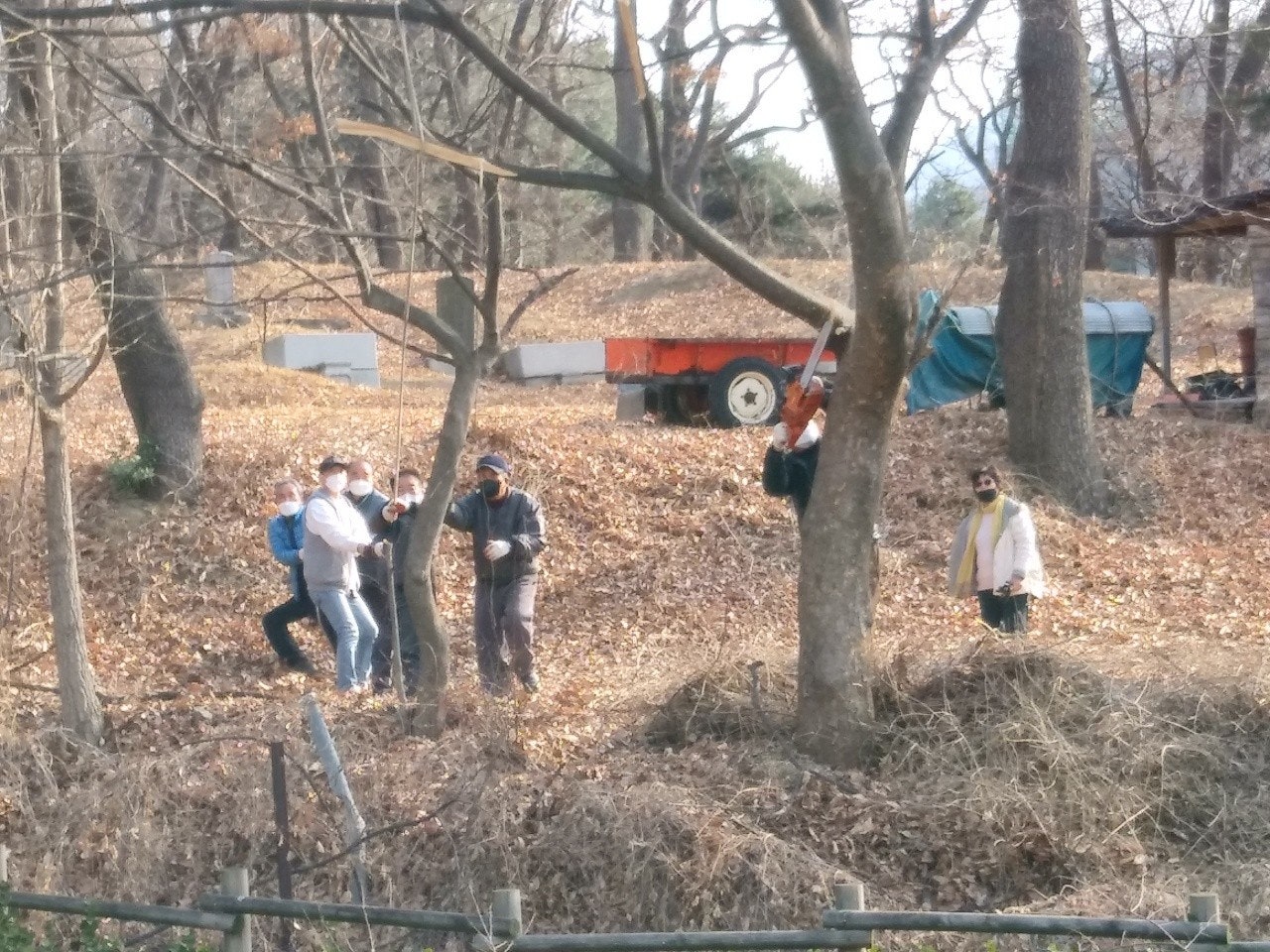 나눔텃밭 쓰레기도 정리. 낙엽모두 퇴비장으로 이동 . 그리고 마늘 .양파 짚멀칭 걷어주었습니다