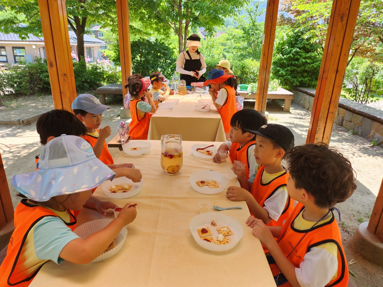 #은행나무어린이집 4회차 주제: 카나페에 봄향기를 담아요 일시: 2024.6.13 (수) 10:00~12:00 대상: 은행나무어린이집 열매 망고반 7세 15명 활동내용: 모심기, 완두콩 수확, 꽃차와 카나페 은행나무어린이집은 원의 사정으로 모내기행사에 참석치 못했어요. 모가 심어진 논을보며 모와벼와 쌀이야기를.하며 조금 늦은 모심기...