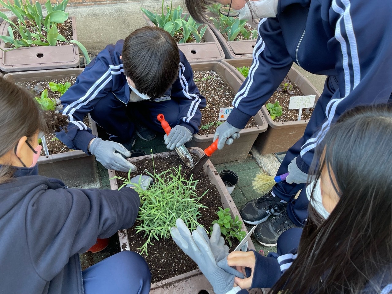 3가지 종류의 허브를 조끼리 어떻게 심을까 상의하면서 심어본다!